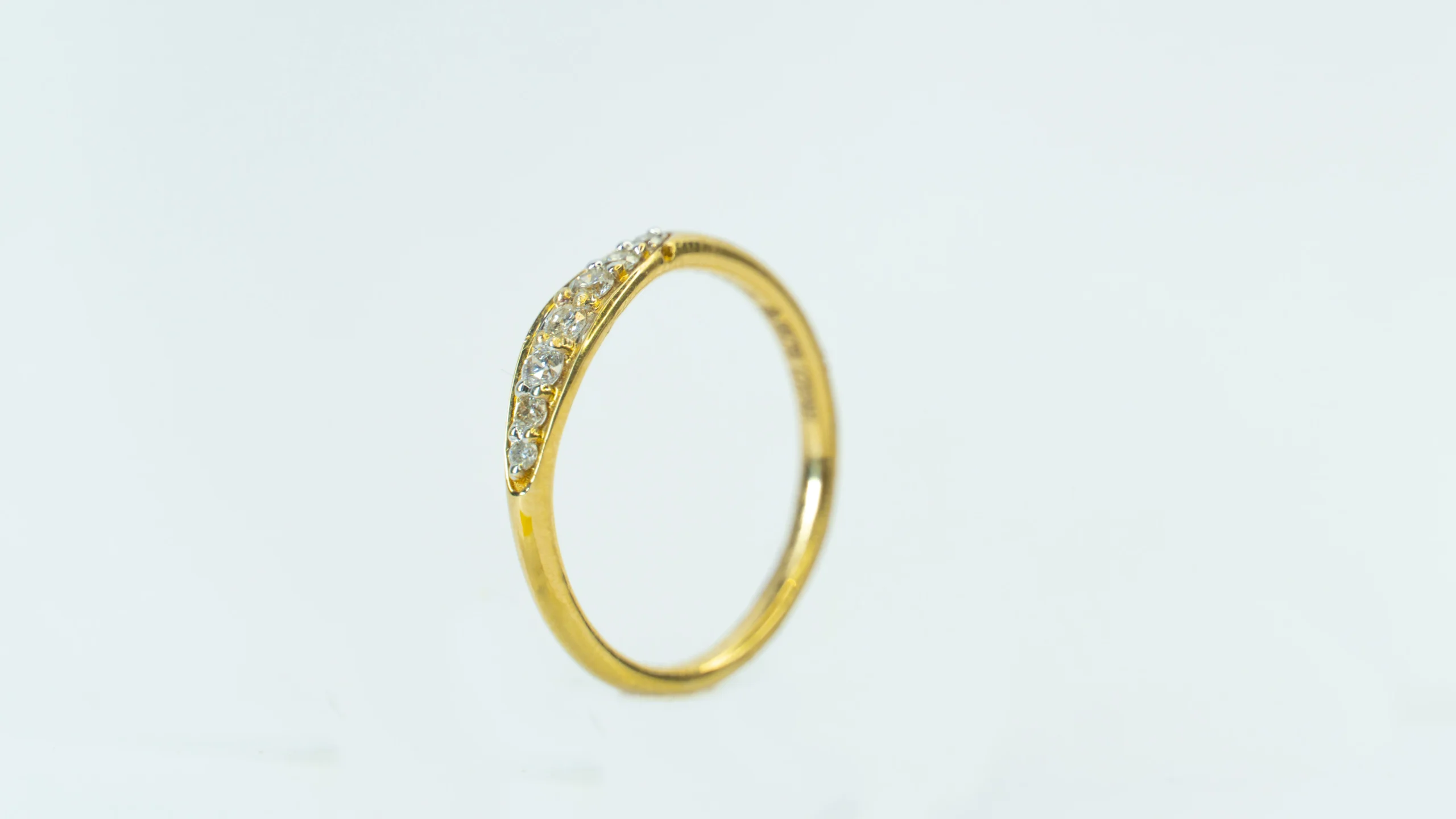 The Gilded Bloom is a contemporary masterpiece that plays with fluid lines and geometric shapes. This bypass-style ring features two graceful arcs of yellow gold, each meticulously set with shimmering diamonds that follow the curve of the finger. The design is anchored by a structured floral cluster on one end and a delicate, stylized drop charm on the other, offering a sophisticated and balanced look.